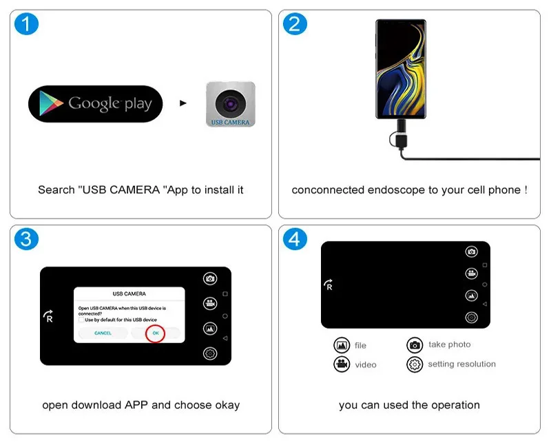 Noted : Make sure your phone can support OTG functionality and also compatible with the UVC ( USB video device class) .