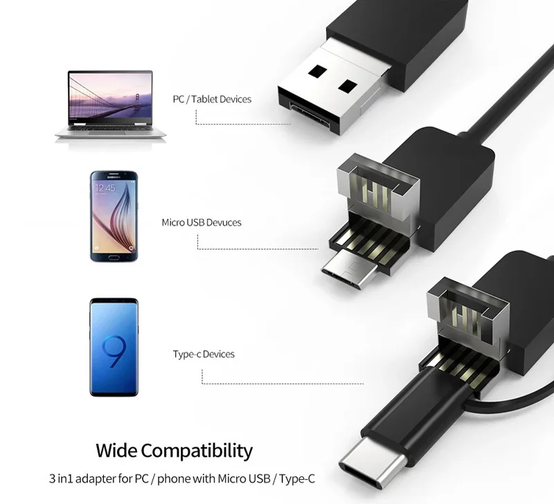 3In1 Endoscope Camera For Usb Android Type C