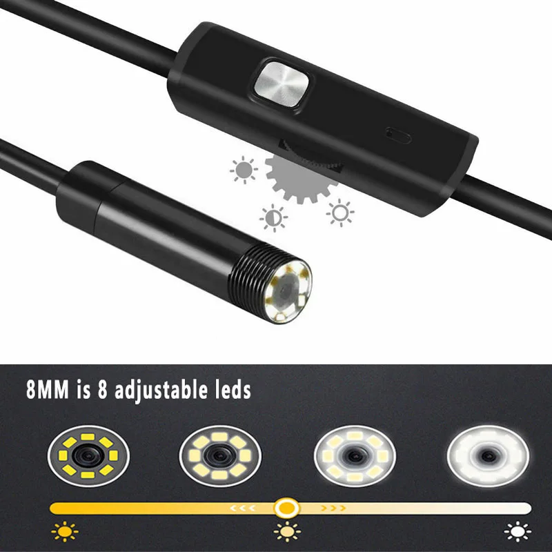 1080P Endoscope Camera 720P Snake Sewer Industrial Piping Borescope Car Inspection Endoscopic 3In1 For Android Pc Usb Type C
