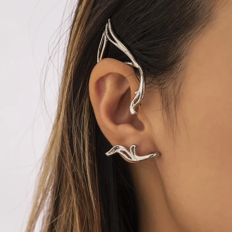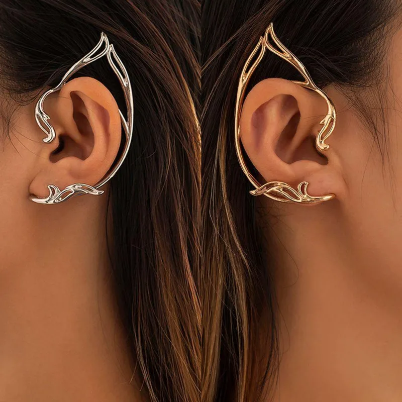Goth Punk Cat Ear Cuff Earring For Women Hip Hop Elf Ear Clip Earrings Party Jewelry Gift